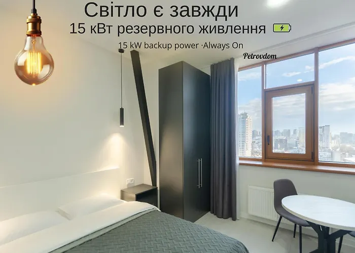 Guests can visit the mikhail Mykhailo Bulgakov Museum-Memorial, 2.8 km away or the Steam Locomotive Monument, 950 metres from the apartment. 14-2 Diplomat Hall, Zhylianska 59, Kyiv Centre, Panoramic City View, 15 Kw Backup Power, Petrovdom Apartment lies in the Holosiivskyj district of Kyiv. Approximately a 25-minute walk from this accommodation you will find the indoor Bessarabsky Market.